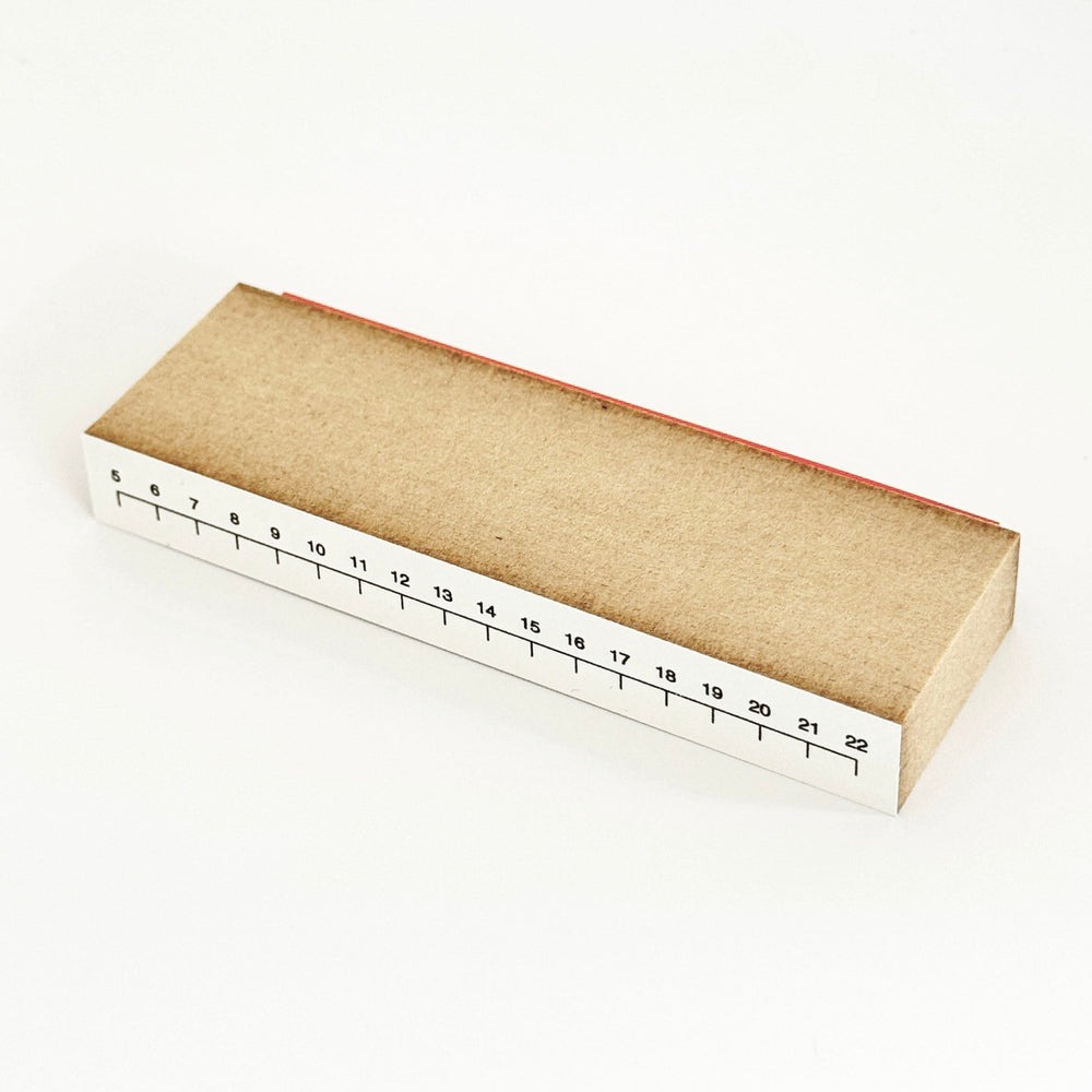 5時から22時までのメモリのついた時間軸のハンコです。ノートの始まりにポンと押して、1日のスケジュールを書き込むことができます。何本か並べて1週間のスケジュールを管理するのも良いですね。メモリは5mm幅になっています。無地のノートに押すのがおすすめです。