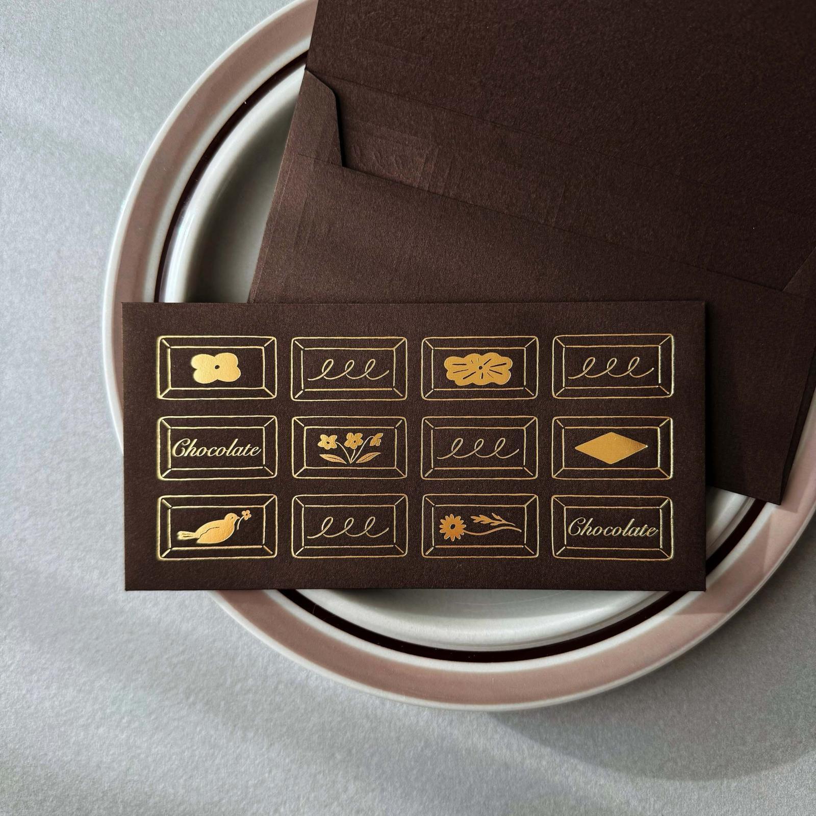 金の箔押しがきらりと輝く板チョコレートの封筒。