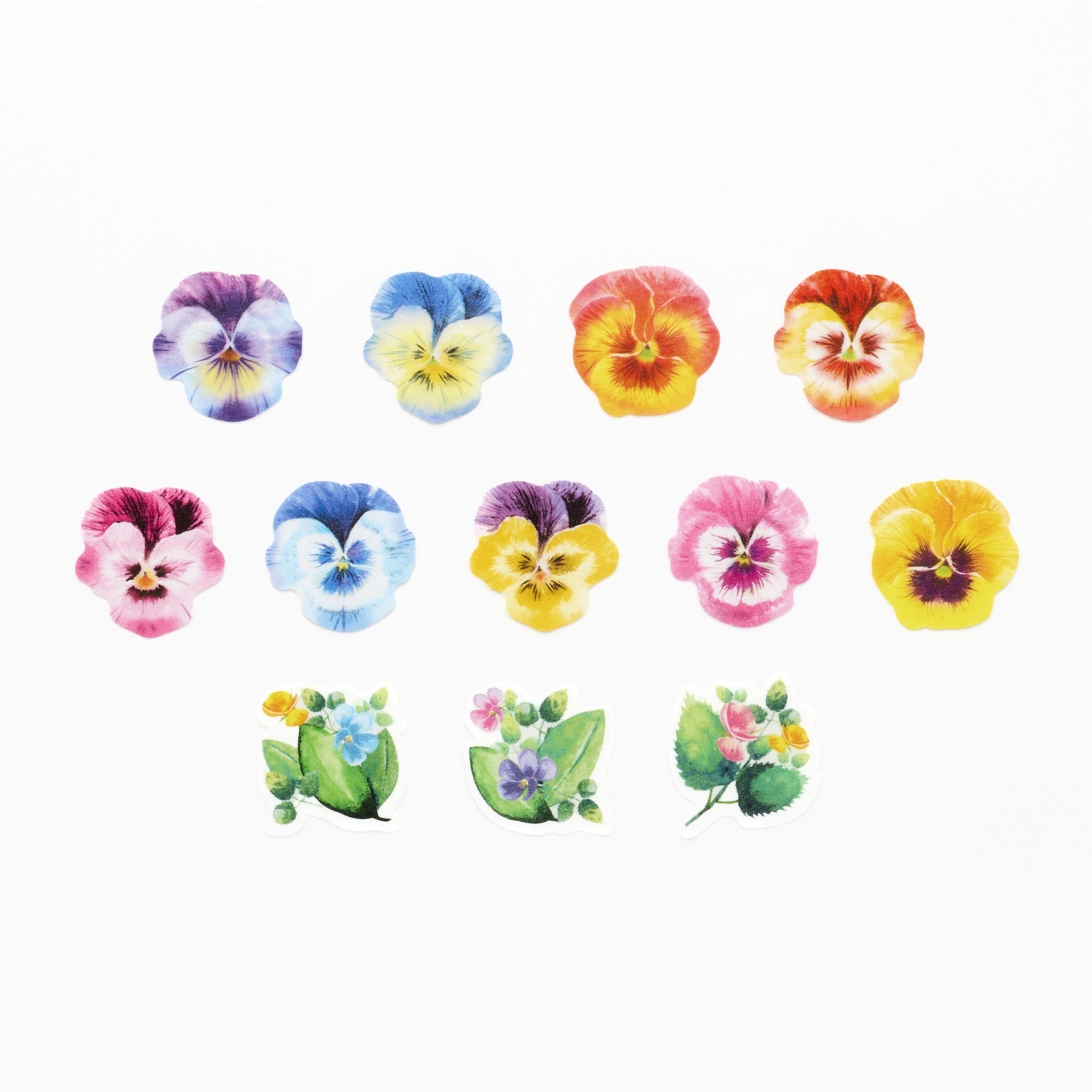 bande誕生初期に登場し、くっきりとしたカラーのパンジーと小花を合わせたフラワーステッカー。