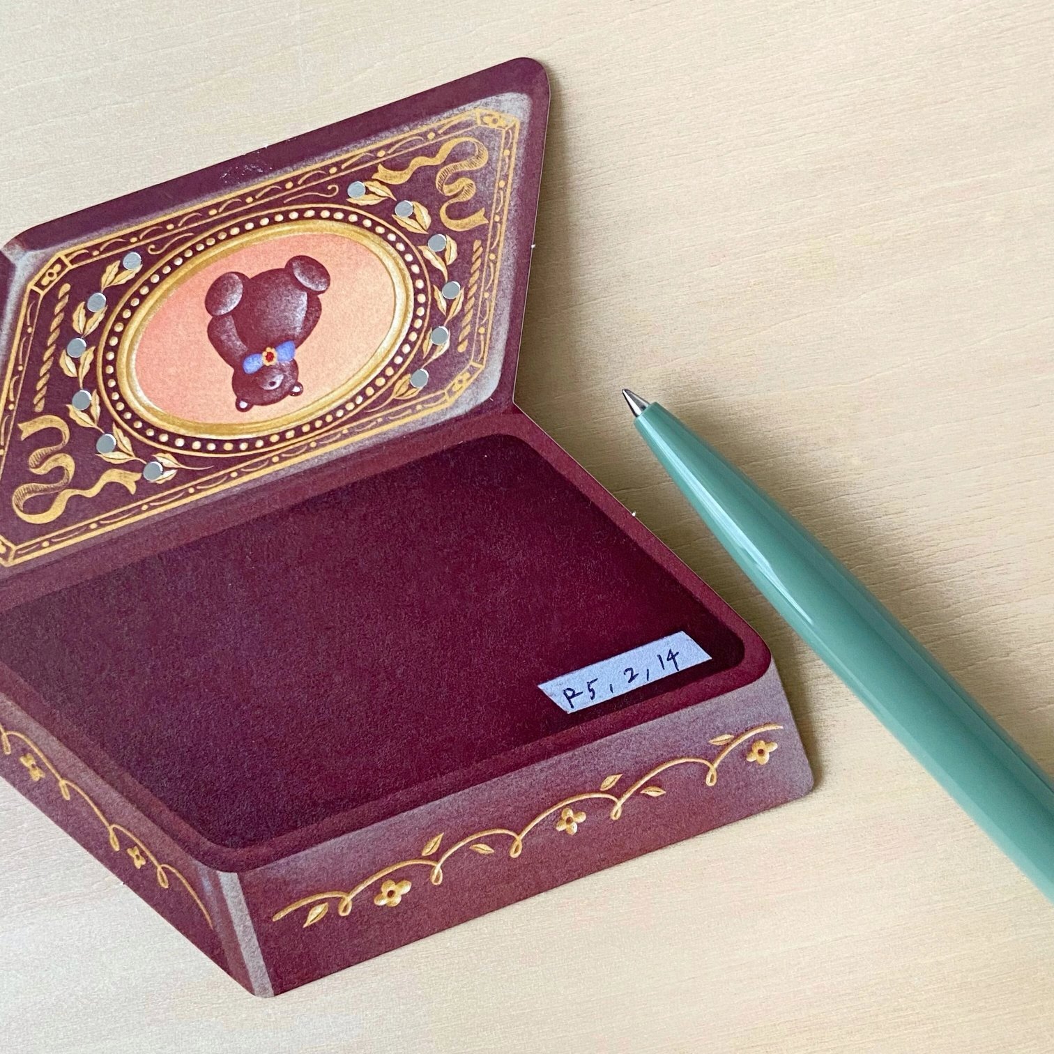 くまとジュエリーボックスをイメージしたチョコレート缶を描いたメッセージカード。