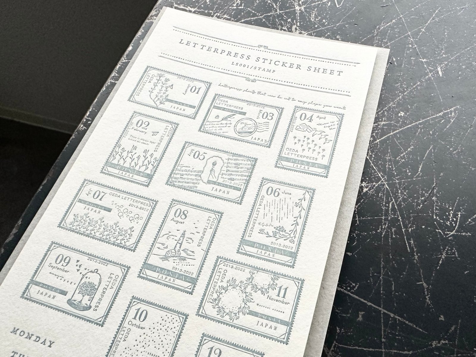 大枝活版室 限定色 LETTERPRESS sticker sheet 『STAMP』 Ash blue